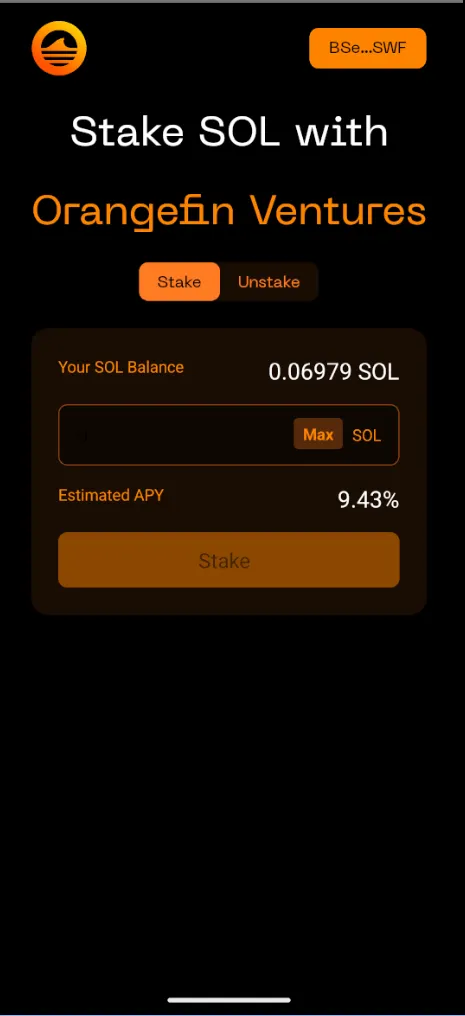 In January 2025, we released a minimal version of what would later become the Orangefin app. Functionaly, the MVP was barebones: users could connect via their Phantom or Solflare wallet and manage their stake accounts.