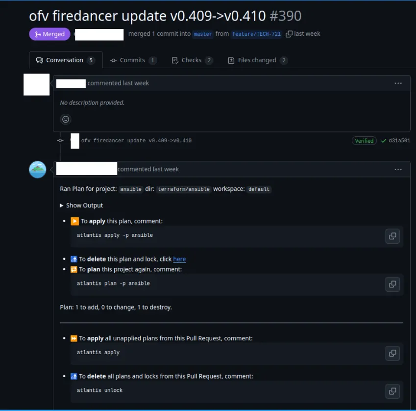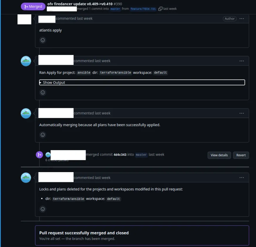 From there, a developer simply has to comment atlantis apply and the entire pipeline runs either spinning up a new validator, or upgrading one.