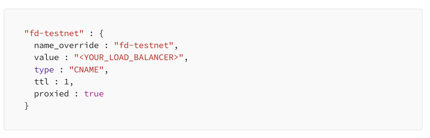 Deploy a DNS record pointing to your load balancer. Make sure to proxy the record. A terraform locals snippet: